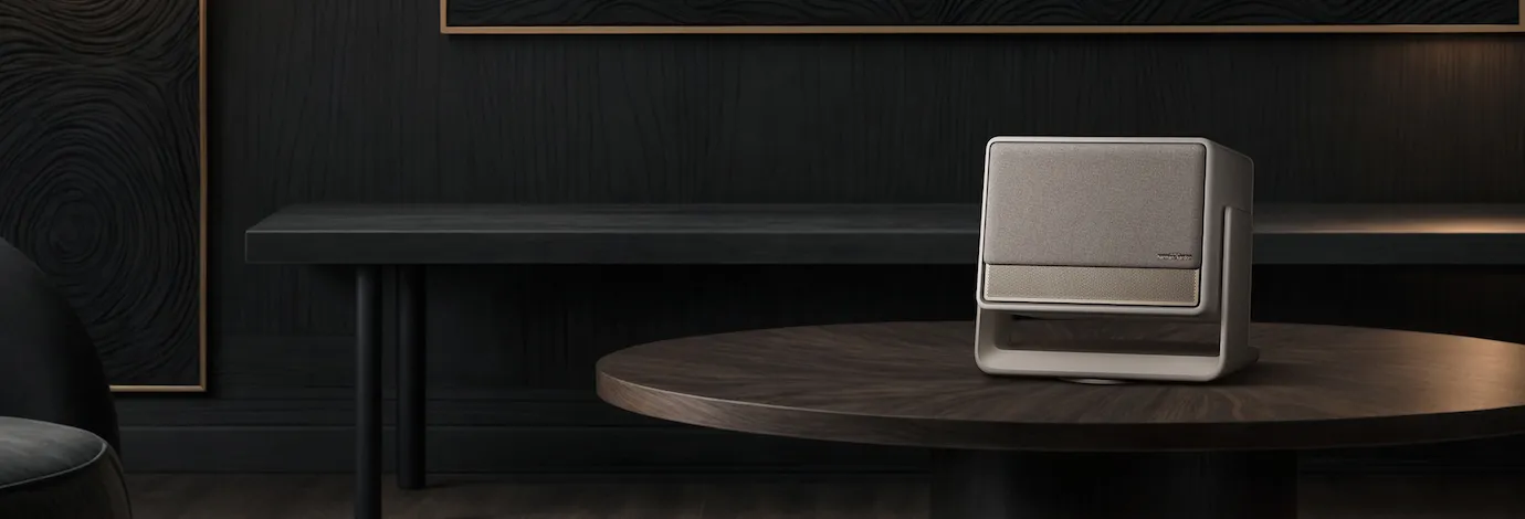 The 360° all-round sound from Harman Kardon ensures a fully immersive home cinema experience. With two 12-watt speakers and a generous volume of 676cc, it produces crystal-clear, powerful sound that puts the audience right in the middle of the action. The patented R-ring design enhances the depth and spatiality of the sound, allowing the audio system to fit perfectly into any film scene.